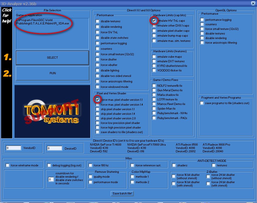 4.Wybieramy Opcje FORCE.MAX.PIXEL.SHADER.VERSION 1.1